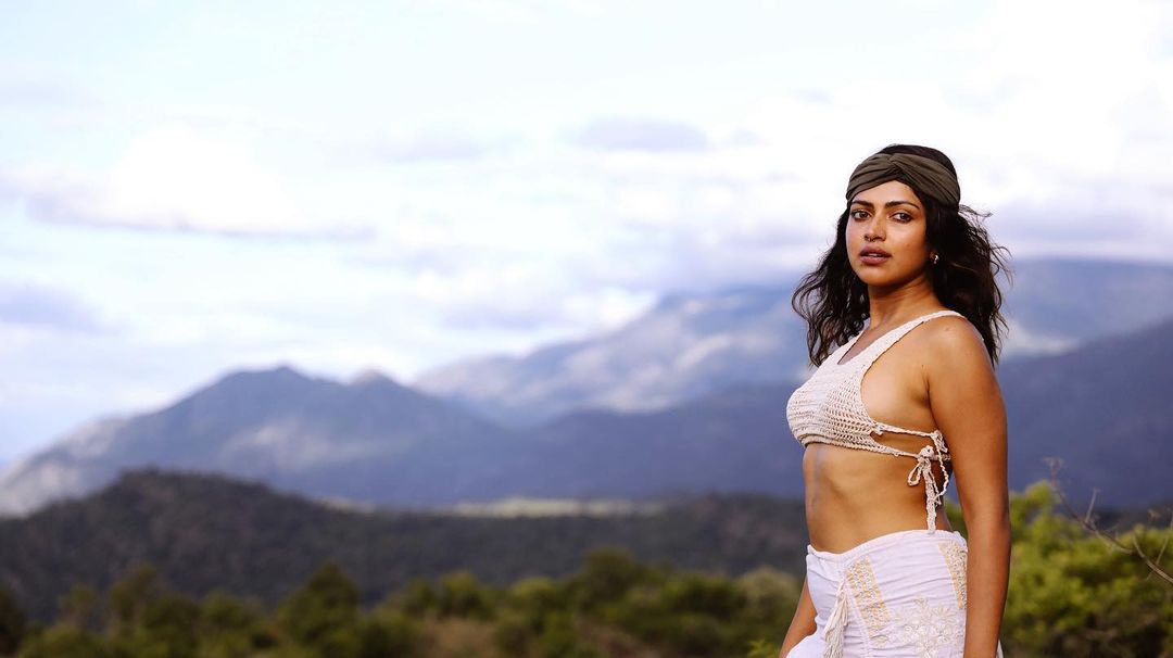 Recently, she shared a set of picture from the mountains and she captioned it as, “ ✨🎭 Embracing the Spotlight Again 🌟.” She was seen wearing white see-through top tied from the back, and a wrap around white skirt. Amala also wore a brown bandana on her head and a nose ring, and posed barefoot on top of a mountain.